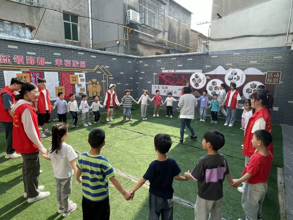 本网讯(通讯员 鲁盼/文 金秋月/摄)为更好地促进未成年人健康成长、将志愿服务精神融入日常实践,4月25日下午,我院志愿者服务队联合郢都路社区开展“趣味游戏,健康成长”活动。