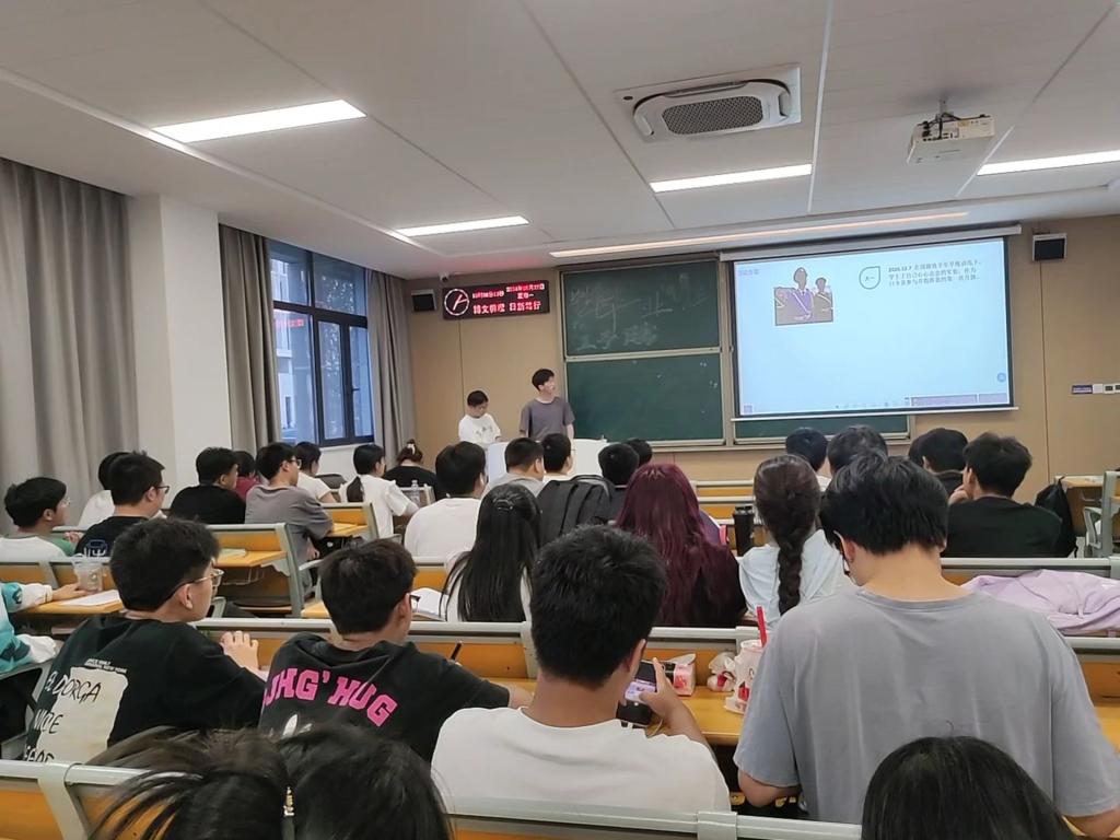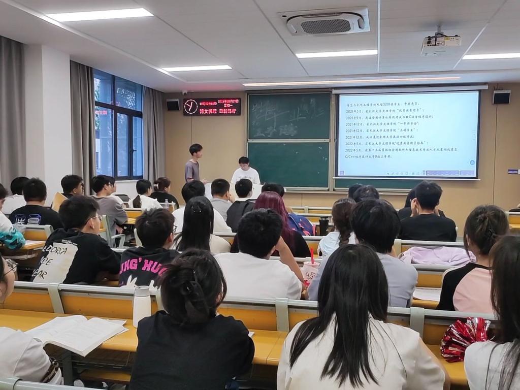 本网讯 (通讯员 赵文慧/文 赵文慧/摄) 为明确学习目标、提升考研热情、帮助学生了解更多考研相关知识和技巧,近日,我院电信专业在C-122教室召开考研经验交流会。已分别被长江大学、海南师范大学考研录取的张钦浩、张俊强给大一学子做经验分享交流。