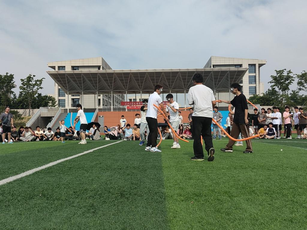 5月18日“以聚传爱,以行健心”户外素质拓展活动在操场顺利举办,全院学生共同参与,一起进行团体活动游戏。此次比赛精心设计了“车轮滚滚”“快乐接力”“爱的抱抱”“蒙眼互打”四个精彩游戏项目,活动过程中,同学们热情高涨,尽情地挥洒着汗水,游乐中欢声笑语,团队的精神化作纽带将同学们紧紧地联系在一起,大家共同努力,共同进步。现场气氛异常热烈,每个同学都积极参与其中,全力以赴,为班级荣誉而战。