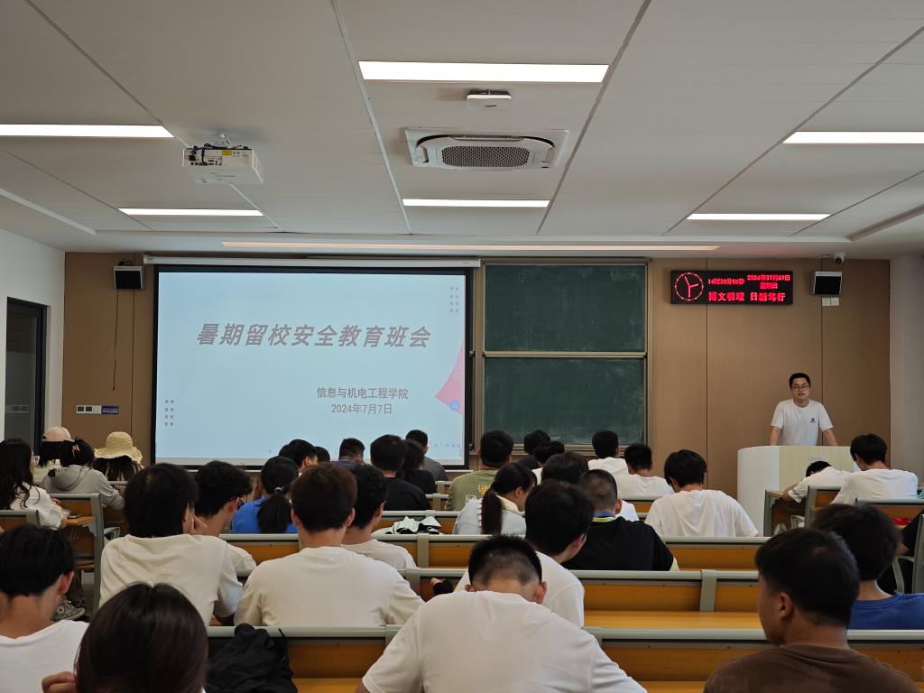 班会上,朱亦丹老师强调留校学生要与辅导员老师保持联系,全体留校学生务必确保及时查阅群消息,以免错过重要信息。他提醒大家,遇到任何困难或特殊情况,务必主动联系告知导师或辅导员,以便得到及时的帮助和支持。随后,我院党总支副书记王大专总结发言,他强调留校学生要增强纪律意识,严格遵守学校管理规定,与家长和老师保持信息畅通;切实提升安全意识,高度重视暑期防溺水安全、饮食安全、交通安全等各个方面;要注意劳逸结合,科学安排各项任务,圆满完成暑期社会实践、项目竞赛。最后,王大专提醒考研学子根据自身情况,合理制定计划,充分利用假期时间备考。