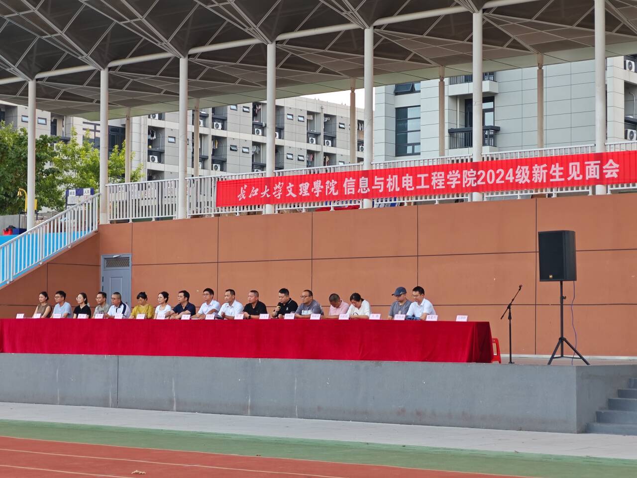 本网讯(通讯员 王振强/文 赵文慧/摄)9月7日下午,我院于新校区操场召开2024级新生见面会,会议由党总支书记吴海良主持,我院院长付兵、常务副院长陈希湘、副院长呙明辉、党总支副书记王大专、办公室主任汪紫薇及新生班辅导员、班主任出席,信息学院全体新生参加。