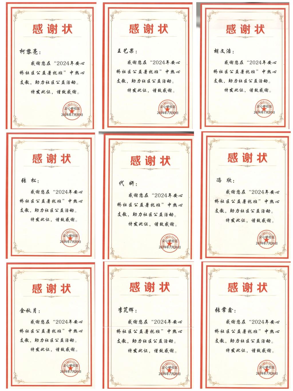 此次收到来自安心桥社区居委会的感谢信,是我院社会实践服务队的意外之喜,这封信既是对我院师生积极参与社区志愿服务工作的肯定,也是对我院持续弘扬奉献精神、履行服务社会职能的激励。我院将继续弘扬社会主义核心价值观,与安心桥社区进一步合作,用实际行动践行社会责任,为助力社区建设和学生成长成才作出积极贡献。