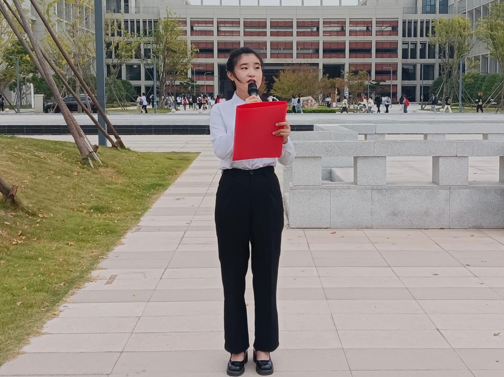 仪式结束后,学生代表周烁迎发言。她说,每份荣耀和精彩背后都有坚持和付出,每一次挑战都是历练和成长,要在青春赛道上不懈拼搏,收获真知,创造辉煌。