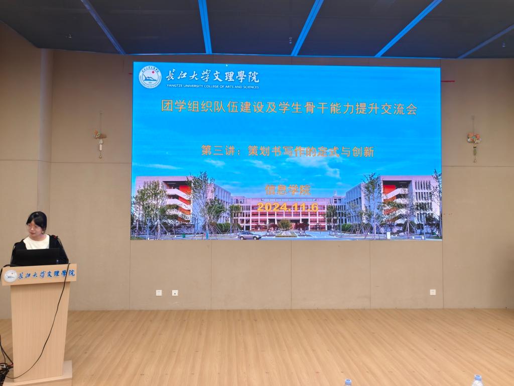 随后,韩雪莹老师对策划书写作的定式与创新进行指导教学,她向学生干部普及了策划书的种类、组成部分及写作的注意事项,并提出策划书的流程应做到周密、无纰漏,在节俭的基础上做到物尽其用。