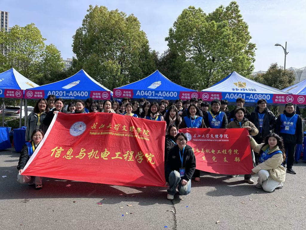为全面助力2025荆州马拉松,学院46名大学生志愿者分为两队在各自的志愿服务岗位上以最饱满的热情和周到的服务助力精彩赛事圆满完成。