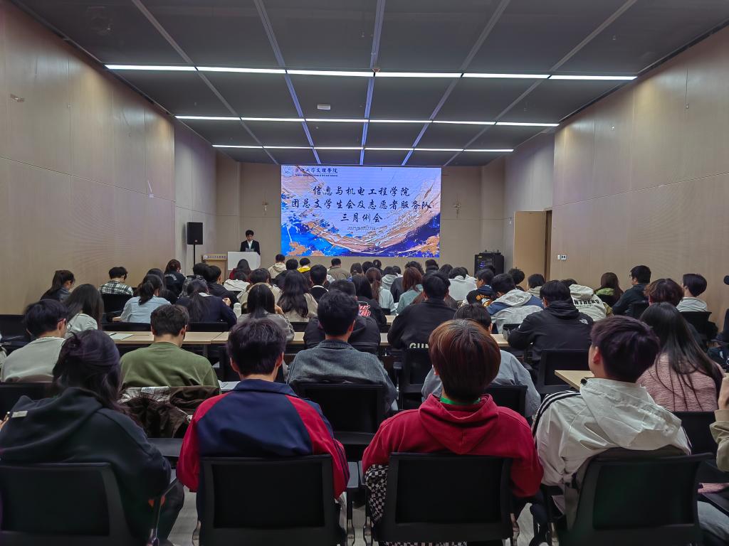 本网讯(通讯员 谢天禹 杨珺涵/文 吴祎/摄)3月27日,信息学院第二十届团总支学生会及志愿者服务队在图书馆103会议室召开三月工作例会,本次例会由院学生会综合办公室张泽玮主持,院全体团学组织干事参加会议。