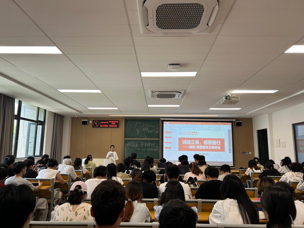 本网讯(通讯员 王妍柳)为深入贯彻落实国家资助政策,强化受资助学生的诚信意识和感恩精神,5月30日,学院于A-102教室开展诚信感恩教育大会。会议由院学生会综合办公室熊小意主持,辅导员杨阳、韩雪莹、王妍柳老师出席,全体受资助学生参加。