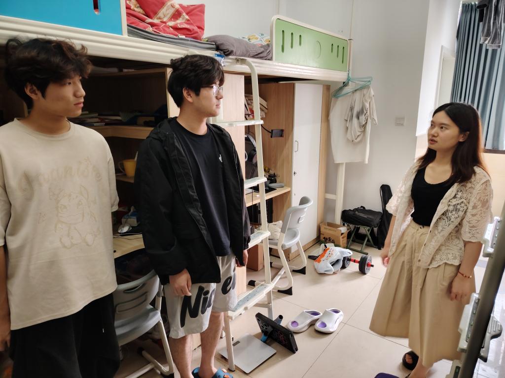 会后,院党总支副书记王大专带领全体辅导员深入学生宿舍,开展全覆盖、无死角的安全隐患排查,重点检查违规电器使用、私拉乱接电线、消防通道堵塞等安全隐患,并对宿舍卫生状况、物品规范摆放等提出明确整改要求。检查过程中,检查组与学生亲切交流,了解其假期安排,并再次叮嘱安全注意事项,提醒学生注意开窗通风,保持环境整洁,预防疾病传播,体现了学院的人文关怀。