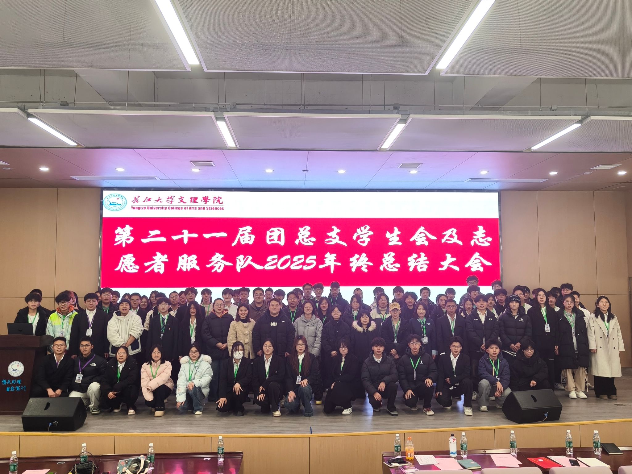 大会最后,全体参会人员合影留念,齐声喊出“新春快乐,马年大吉”的祝福口号,为本次总结大会画上圆满句号。新起点承载新使命,新征程呼唤新作为。学院团总支学生会及志愿者服务队全体成员将以此次大会为契机,以问题为导向精准补短板,以实干为底色蓄力再出发,持续提升服务能力与工作水平,为学院高质量发展注入青春动能、贡献青年力量。