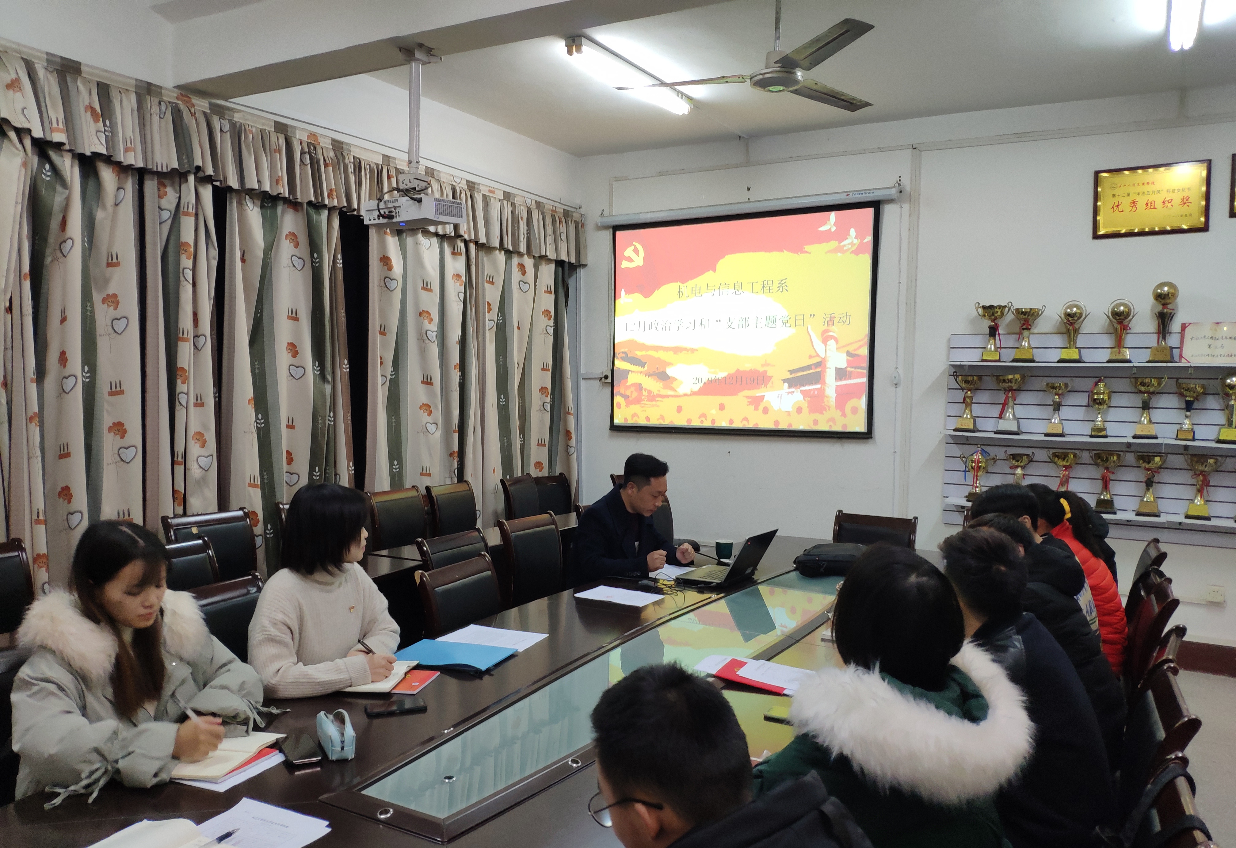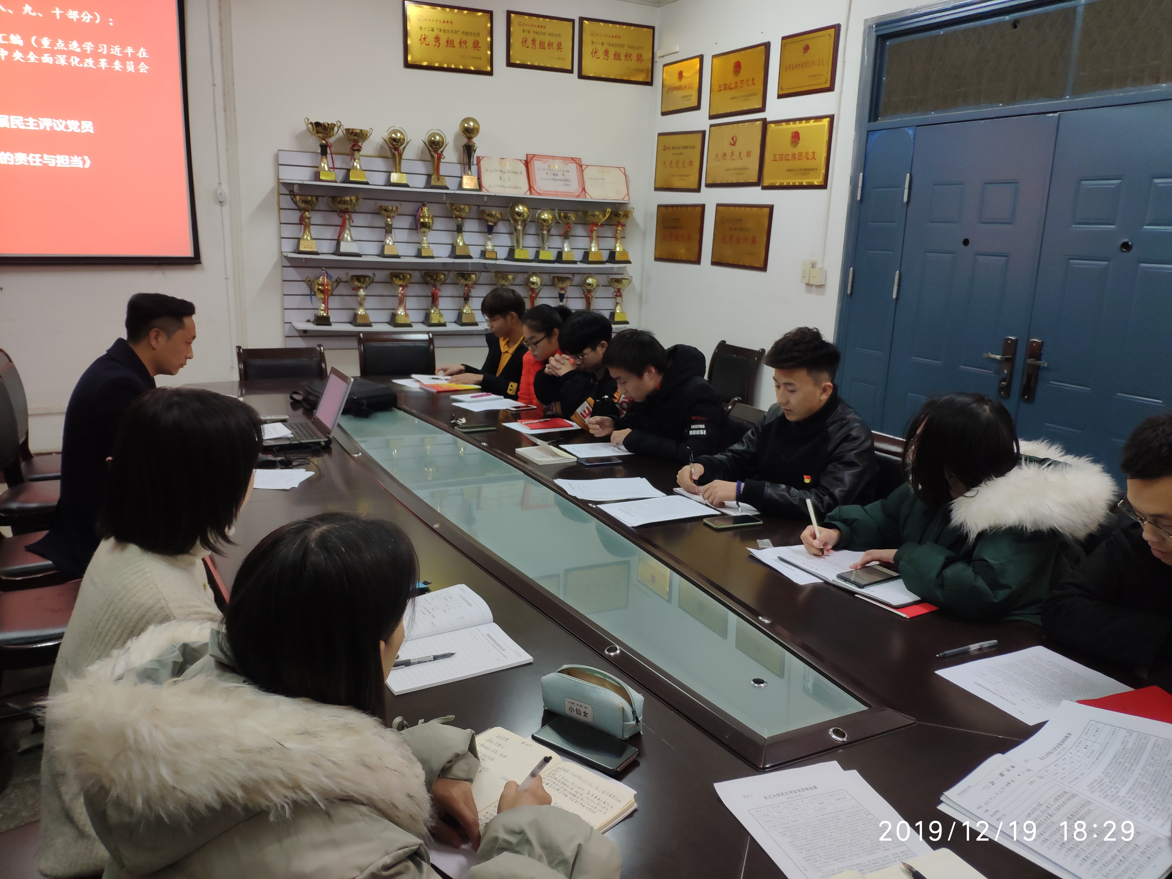 本网讯(学生记者 刘文婷)12月19日晚,我系学生党支部在会议室开展12月份政治学习和“支部主题党日”活动。系党总支副书记辛裕主持,15名学生党员全员参加。