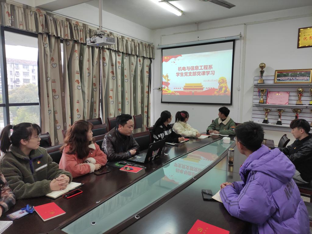 本网讯(学生记者 常伟)3月18日下午,通过线上线下相结合的方式,在系会议室和腾讯会议平台,我系学生党支部开展3月份政治学习、“支部主题党日”活动和党课学习。会议由孙文静主持,系党总支副书记辛裕出席,支部全体党员参加。