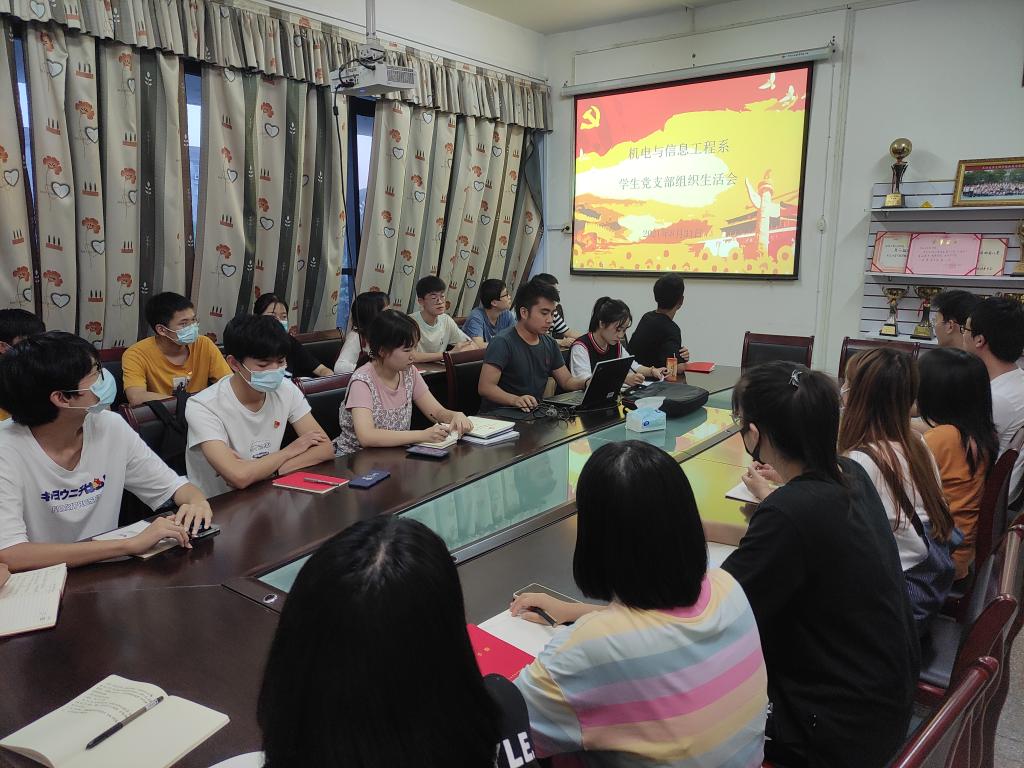本网讯(学生记者 谢丽娇)8月31日晚,在系部会议室,我系学生党支部召开组织生活会,会议由辅导员成观雄主持,我系全体学生党员参加。