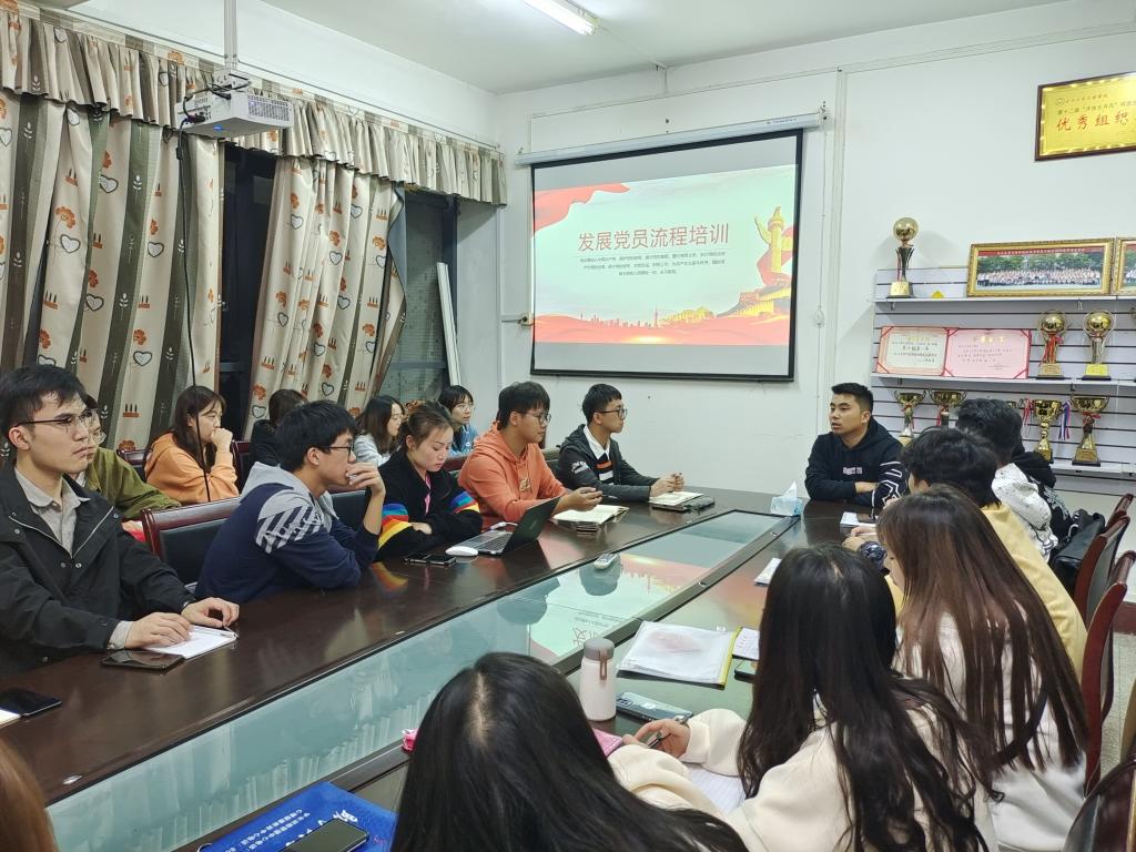 本网讯(学生记者 付思进)10月25日晚,在西校区一教机电系会议室,我系召开发展党员流程培训会。会议由物理5191熊朝玉主持,辅导员成观雄出席,我系党员发展对象和19级部分预备党员参加。
