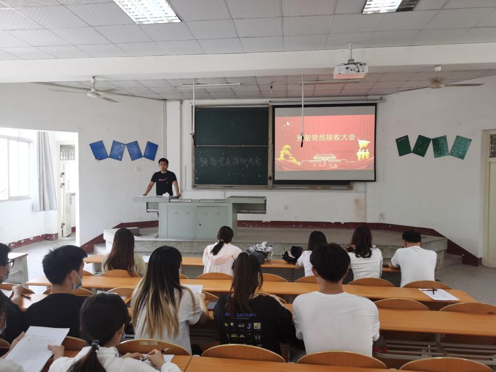 本网讯(学生记者 谢丽娇)5月24日中午,在D4-200阶梯教室,学生党支部召开党员大会。大会分为两个阶段:预备党员接收、入党宣誓。会议讨论表决张庆宇、程璇、韩武、刘玉琪、王志润、陈博士、陈平苹、吴家佳、黄培森、郭露10名拟发展对象的接收事项。学生党支部书记成观雄主持会议,相关培养考察人一同参与。