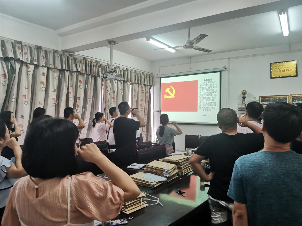 在支部主题党日阶段,全体党员温入党誓词、交纳党费,集体诵读《中国共产党章程》第六章,学习了一系列重要讲话和文件精神。