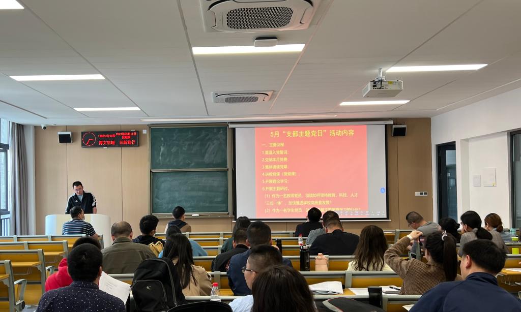 在支部主题党日活动中,全体党员重温入党誓词、交纳党费、集体诵读《中国共产党章程》;学习《中国共产党章程》第五章;党的二十大精神:如何理解教育、科技、人才是全面建设社会主义现代化国家的基础性、战略性支撑;如何理解培养什么人、怎样培养人、为谁培养人是教育的根本问题;《论党的自我革命》、《习近平新时代中国特色社会主义思想的世界观和方法论专题摘编》、《习近平关于调查研究论述摘编》等内容。