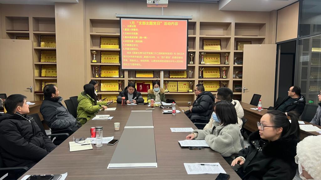 在支部主题党日活动中,全体党员重温入党誓词、交纳党费、集体诵读《中国共产党章程》总纲;集体学习习近平总书记的重要讲话和指示精神:习近平在纪念毛泽东同志诞辰130周年座谈会上的重要讲话;中共中央印发的《中国共产党纪律处分条例》(2023年12月8日第三次修订);湖北省委决策部署《关于深入推进党员干部下基层察民情解民忧暖民心实践活动的意见》;长江大学精神《永远奔向前方——长江大学2024年新年献词》等内容。