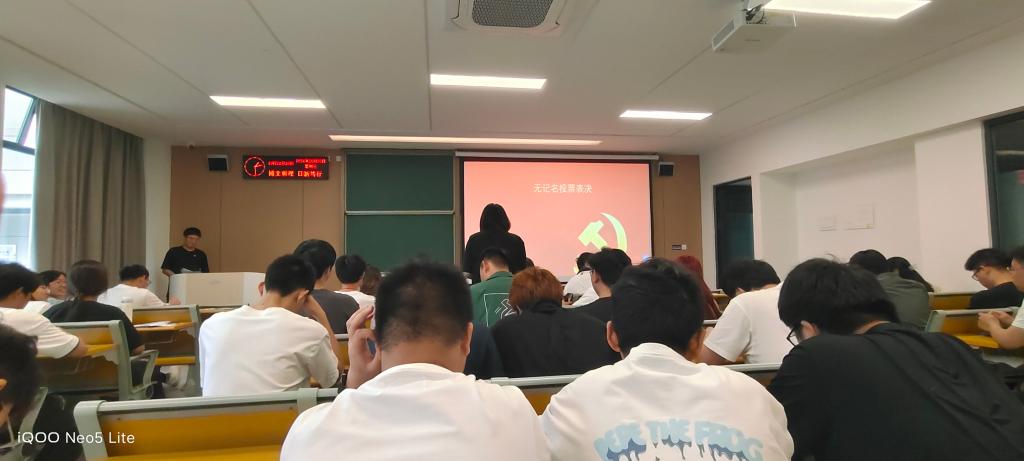 表决阶段,一致通过赵傲博同志为监票人,孟娜同志为计票人,通过无记名投票的方式,监票人和计票人统计。王大专当众宣布本次支部大会决议一致同意张松、胡文浩、刘淑帆、陈畅、帅树立、王盛博、贺博、周爱娟、陈佳玲、代阳、屈依萍十一名同志接收为预备党员的申请,并鼓掌通过。随后,十一名预备党员同志表态,表明自己对大家提出意见的看法和今后的决心。接着,全体与会党员进行庄严宣誓。