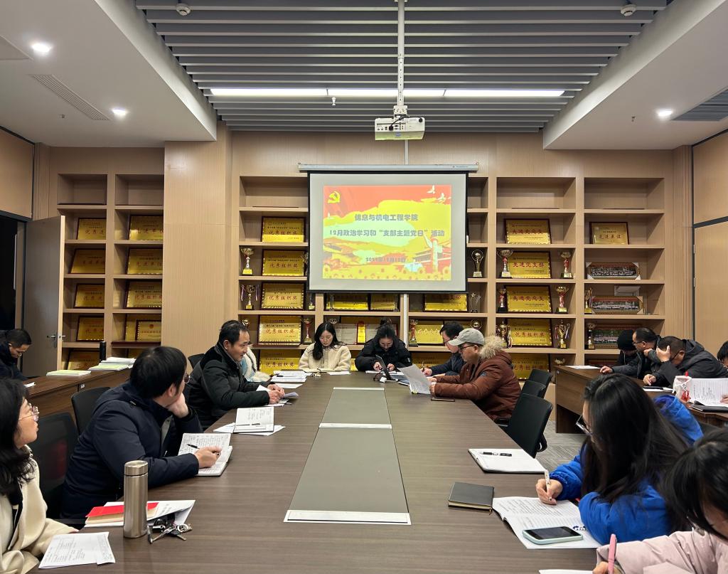本网讯(通讯员 王妍柳)12月12日下午,我院教工党支部在信息学院会议室开展12月份政治学习和“支部主题党日”活动。会议由教工党支部书记呙明辉主持,支部全体教职工参加。