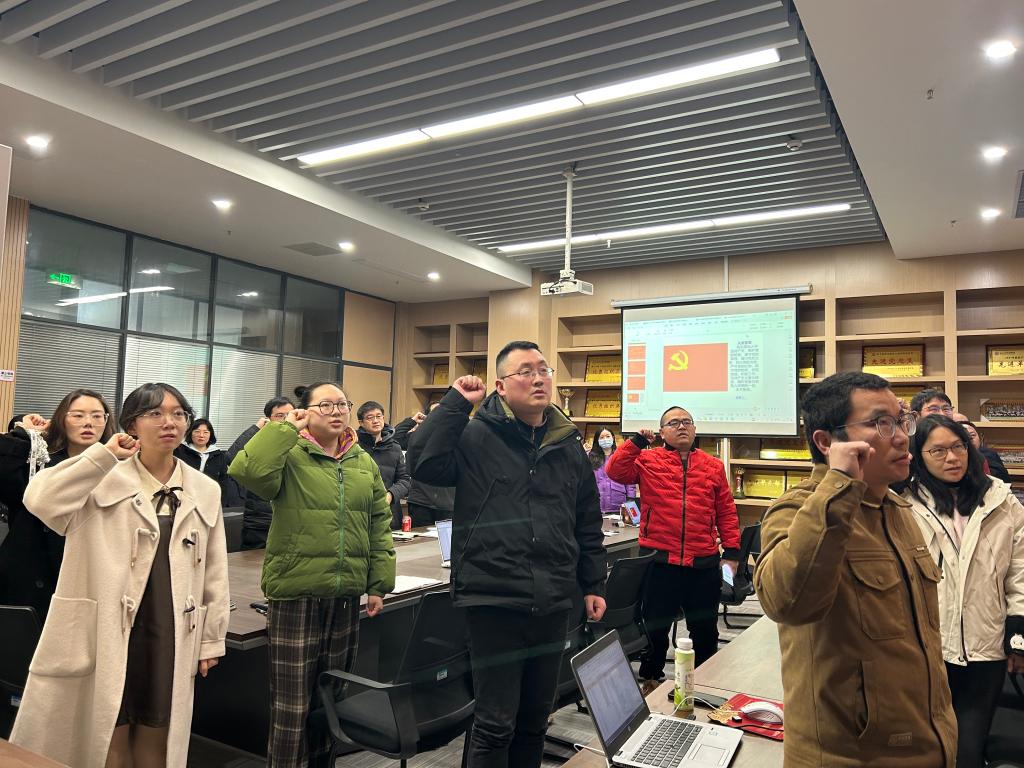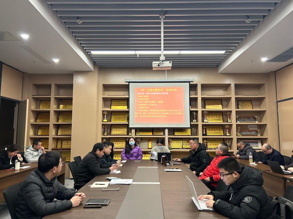 在支部主题党日活动中,全体党员重温入党誓词、交纳党费,集体学习《中国共产党章程》(第四章);学习习近平在二十届中央纪委四次全会上发表的重要讲话:坚持用改革精神和严的标准管党治党 、坚决打好反腐败斗争攻坚战持久战总体战;学习《求是》杂志发表的习近平总书记的重要文章——《健全全面从严治党体系》;学习湖北省“新春第一会”精神;学习第二十八次全省高校党的建设工作会议精神等内容。