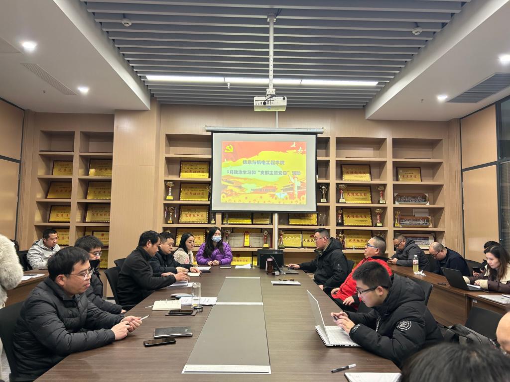 本网讯(通讯员 王妍柳)3月13日下午,我院教工党支部在信息学院会议室开展3月份政治学习和“支部主题党日”活动。会议由教工党支部书记呙明辉主持,信息学院全体教职工参加。