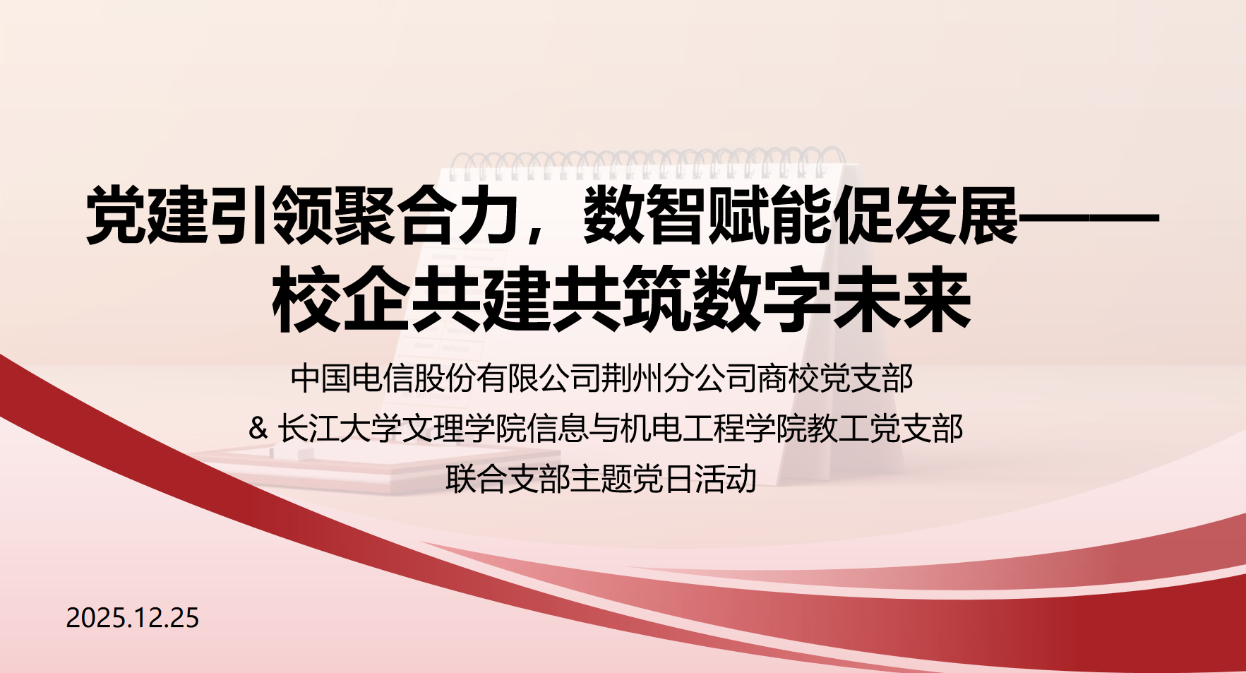本网讯(通讯员 呙明辉/文 肖青青/摄)12月25日下午,信息与机电工程学院教工党支部与中国电信股份有限公司荆州分公司商校党支部联合开展“党建引领聚合力,校企共建筑未来”主题党日活动。双方通过经验分享、座谈研讨、实地参观等形式,共同探索党建与业务深度融合新路径,携手服务地方数字经济发展。