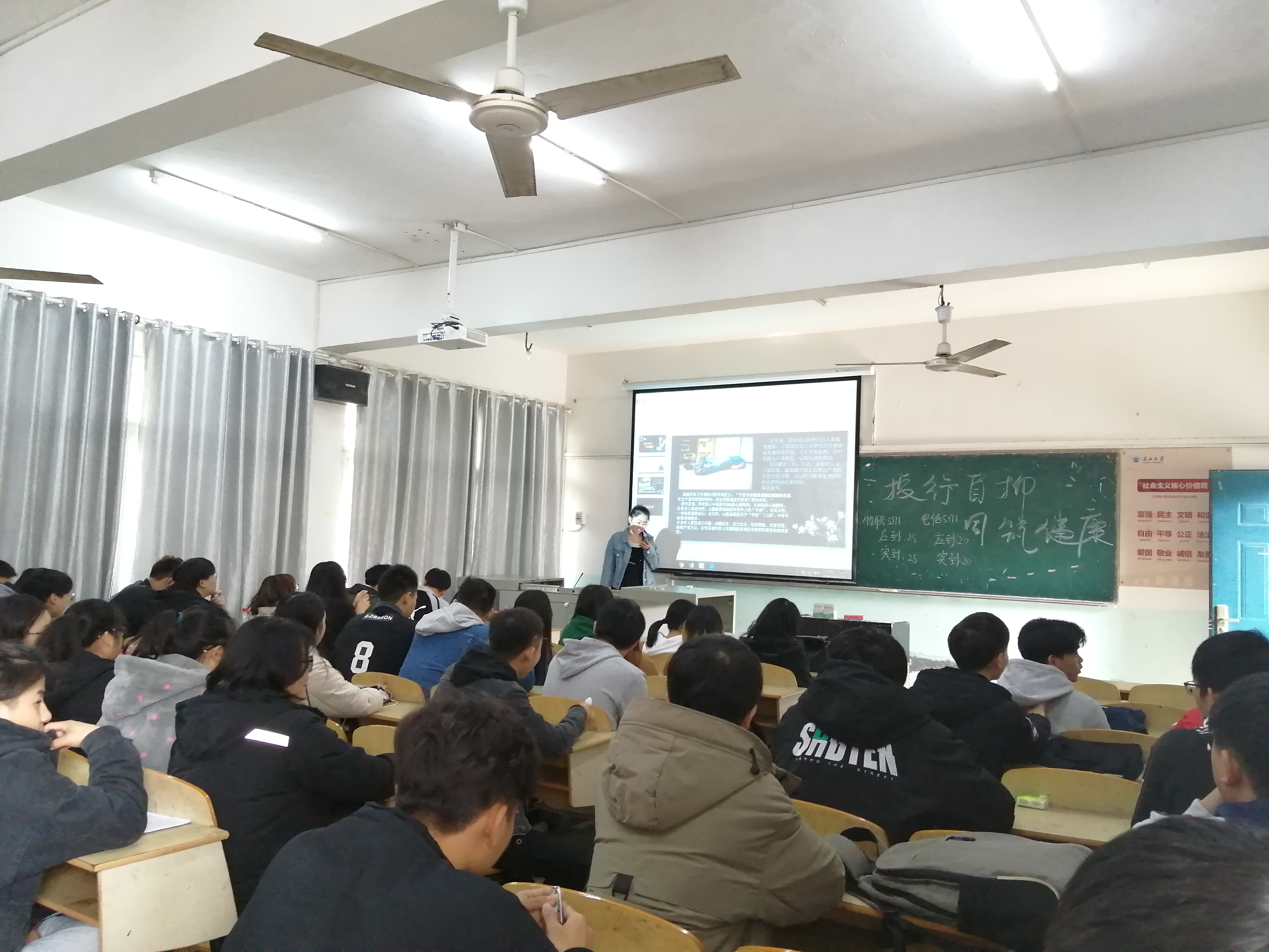 本网讯(学生记者李丹)12月5日晚,在西校区各自习室,我系各班开展“按行自抑,同筑健康”主题团课。团课由各班团支书主持,辅导员成观雄、王琳出席,班级全体同学参与。