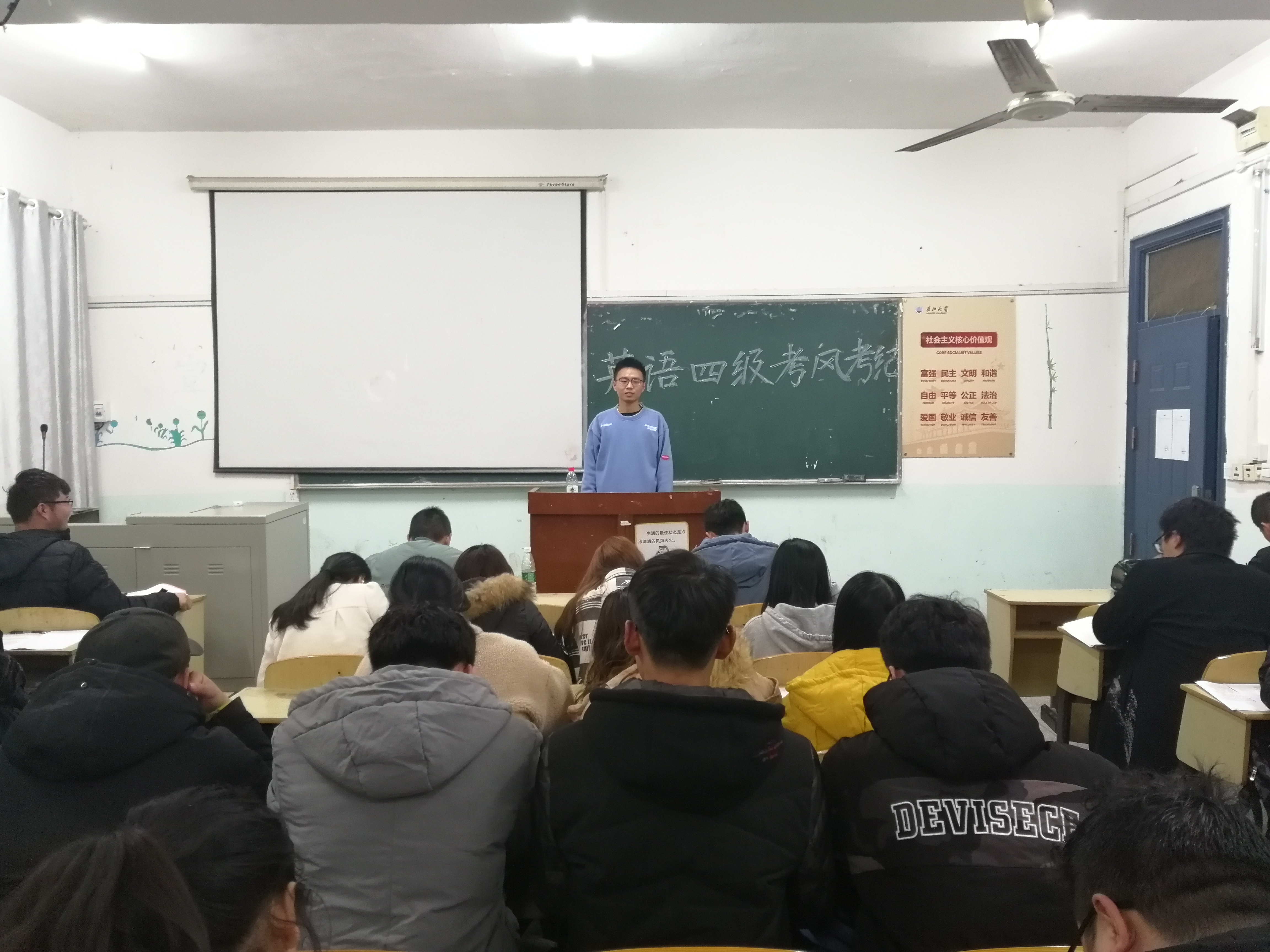 班会上,主持人详细介绍大学英语四六级考试考生应试守则、我院学生违纪处分办法、国家教育考试违规处理办法、中华人民共和国刑法修正案(九)、192次考试基本情况,并着重强调英语四六级的重要性。成观雄向同学们分享了一些考试技巧,叮嘱大家务必携带好考试相关证件和用品,并预祝大家取得好成绩。
