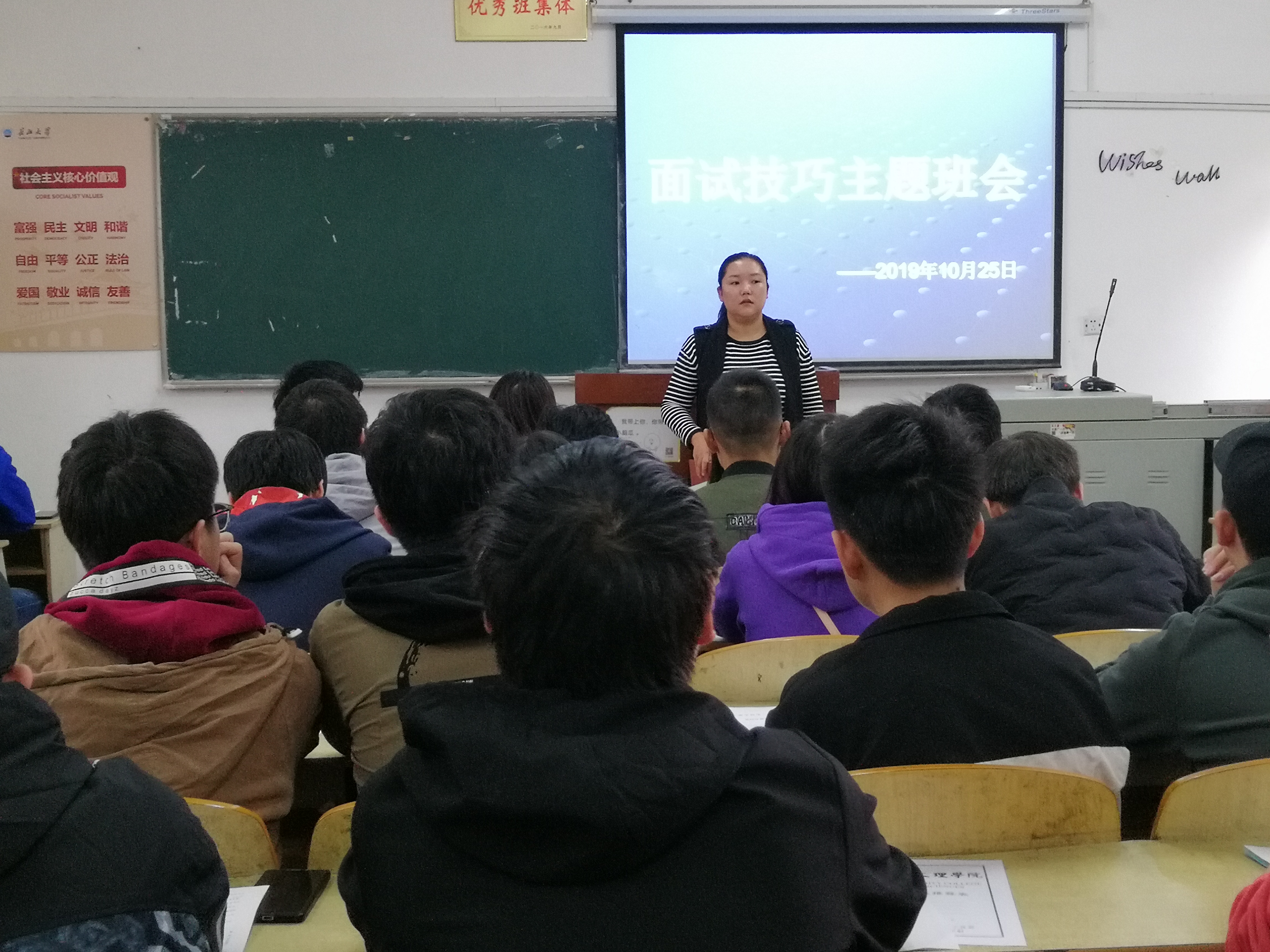 本网讯(学生记者 常伟)10月25日上午,我系在D2-205教室组织开展2020届部分专业毕业生面试技巧指导。班级辅导员王琳主讲,物联5161、计科5161全体同学参加。