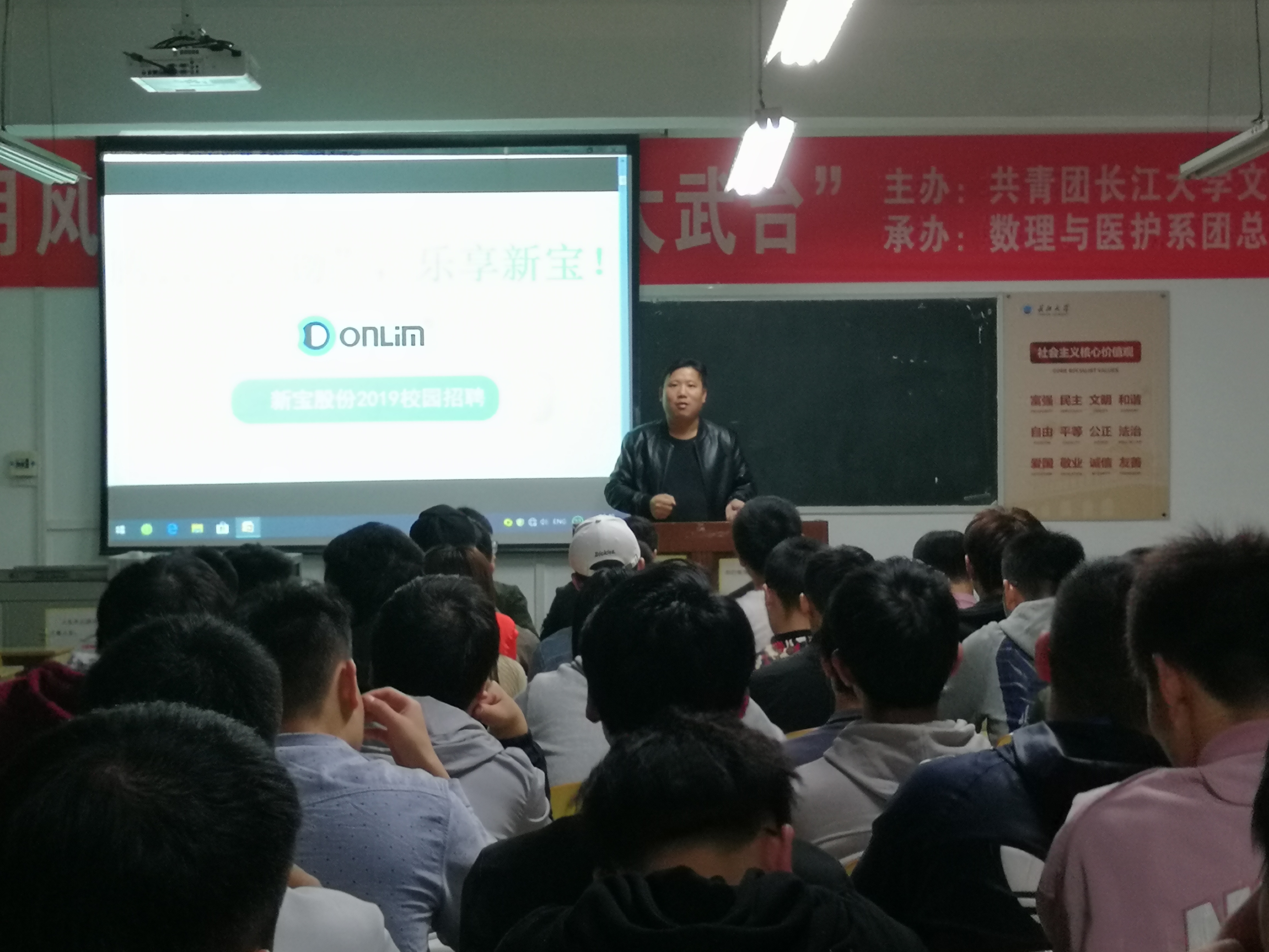 本网讯(学生记者曲孝佳)10月31日晚,在我院西校区四教201教室,广东新宝电器股份有限公司来我系举行专场招聘活动。活动由该公司人事经理刘灯美主持,学工部部长罗婷、副部长祝峰,系党总支副书记辛裕、辅导员成观雄出席,2020届毕业生参加。