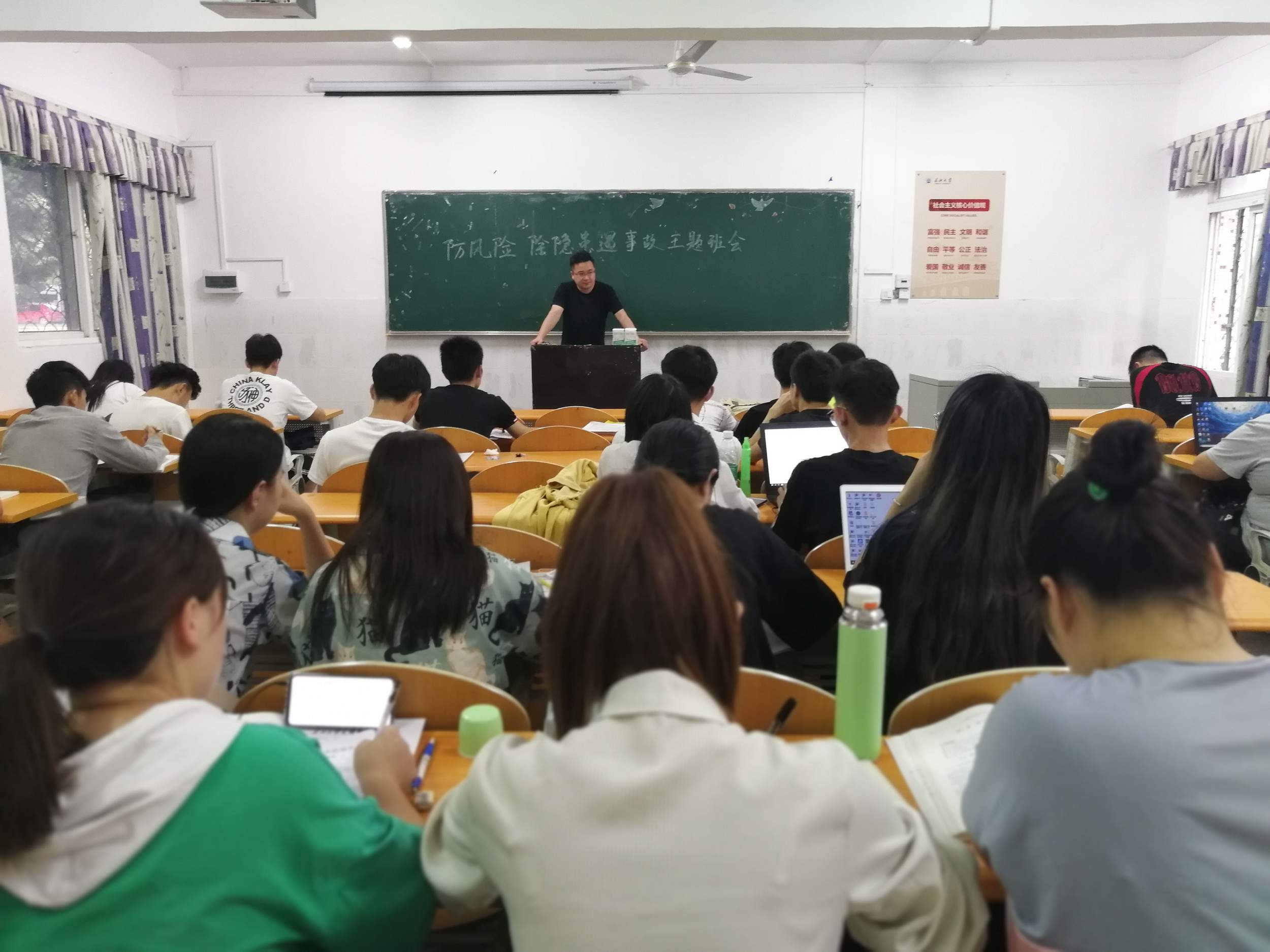 本网讯(学生记者 刘文婷)为了贯彻落实校园安全精神,扎实做好校园的各项安全工作,着力提升师生安全素质。6月18日晚,我系各班开展“防风险、除隐患、遏事故”安全教育主题班会。班会由各班学习委员主持,各班全体同学参与,辅导员李辉、成观雄出席。