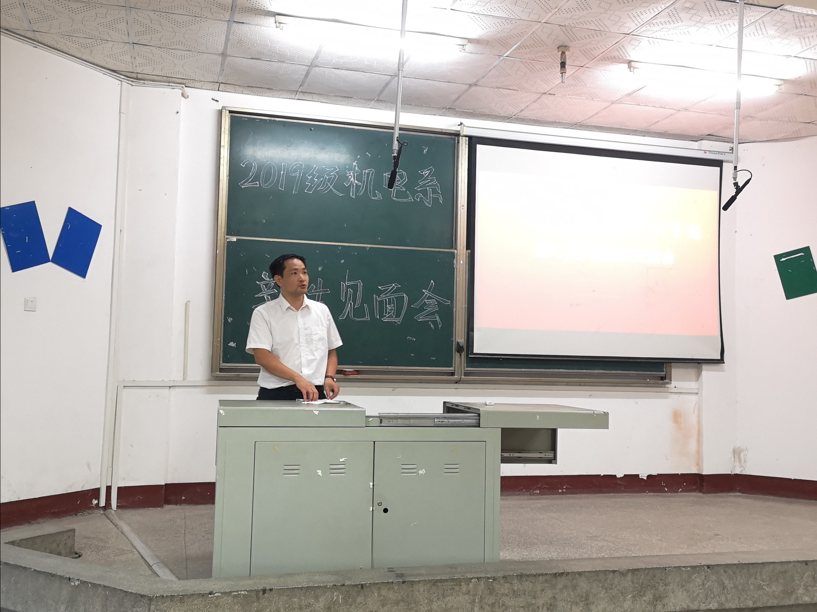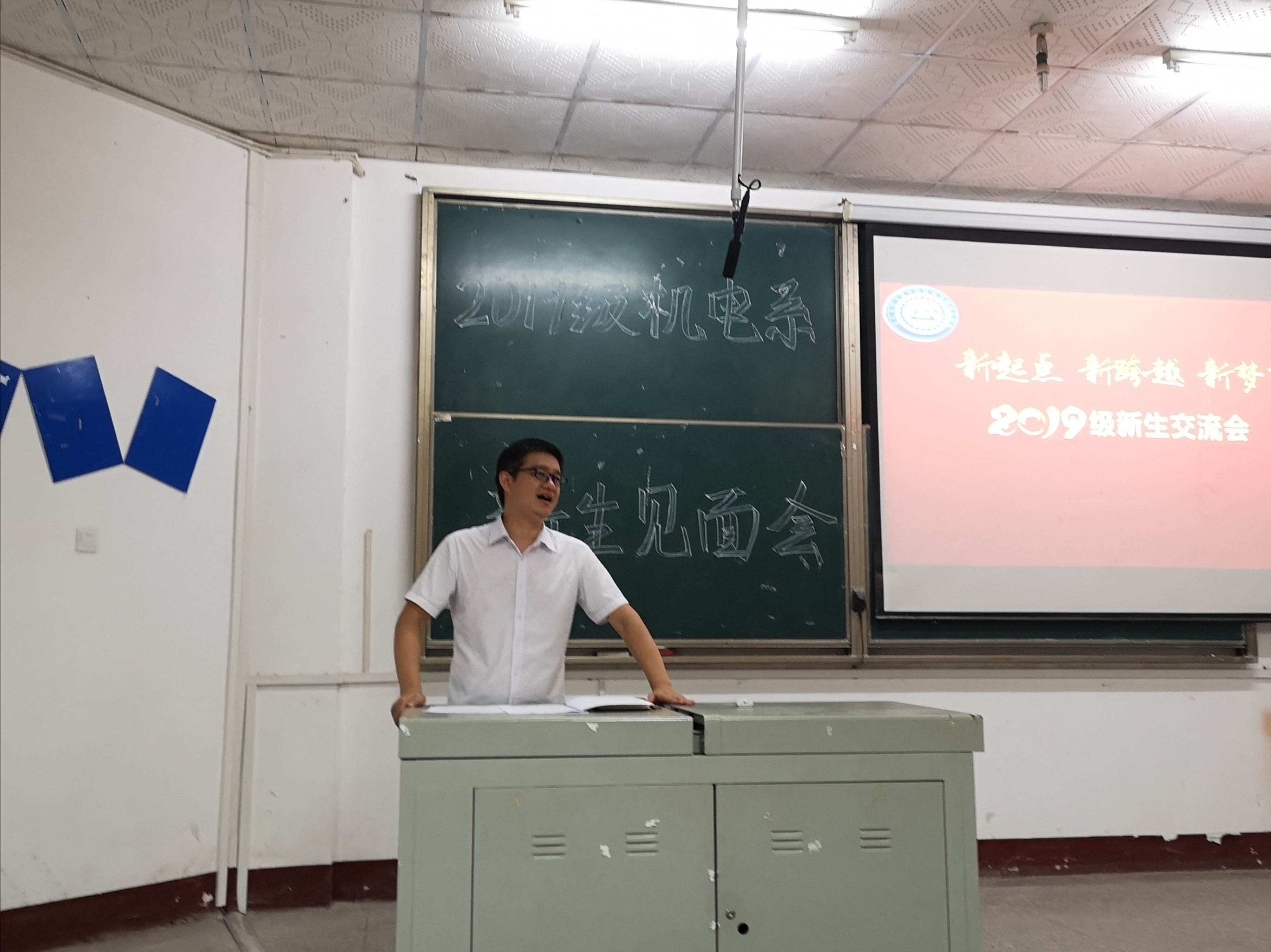 本网讯(学生记者 刘文婷)9月6日晚,在4教200教室,我系2019级新生见面会隆重召开。系主任付兵、副主任呙明辉、党总支副书记辛裕、2019级新生辅导员王琳,及各班班主任老师出席,大一全体新生参与,会议由系党总支书记吴海良主持。