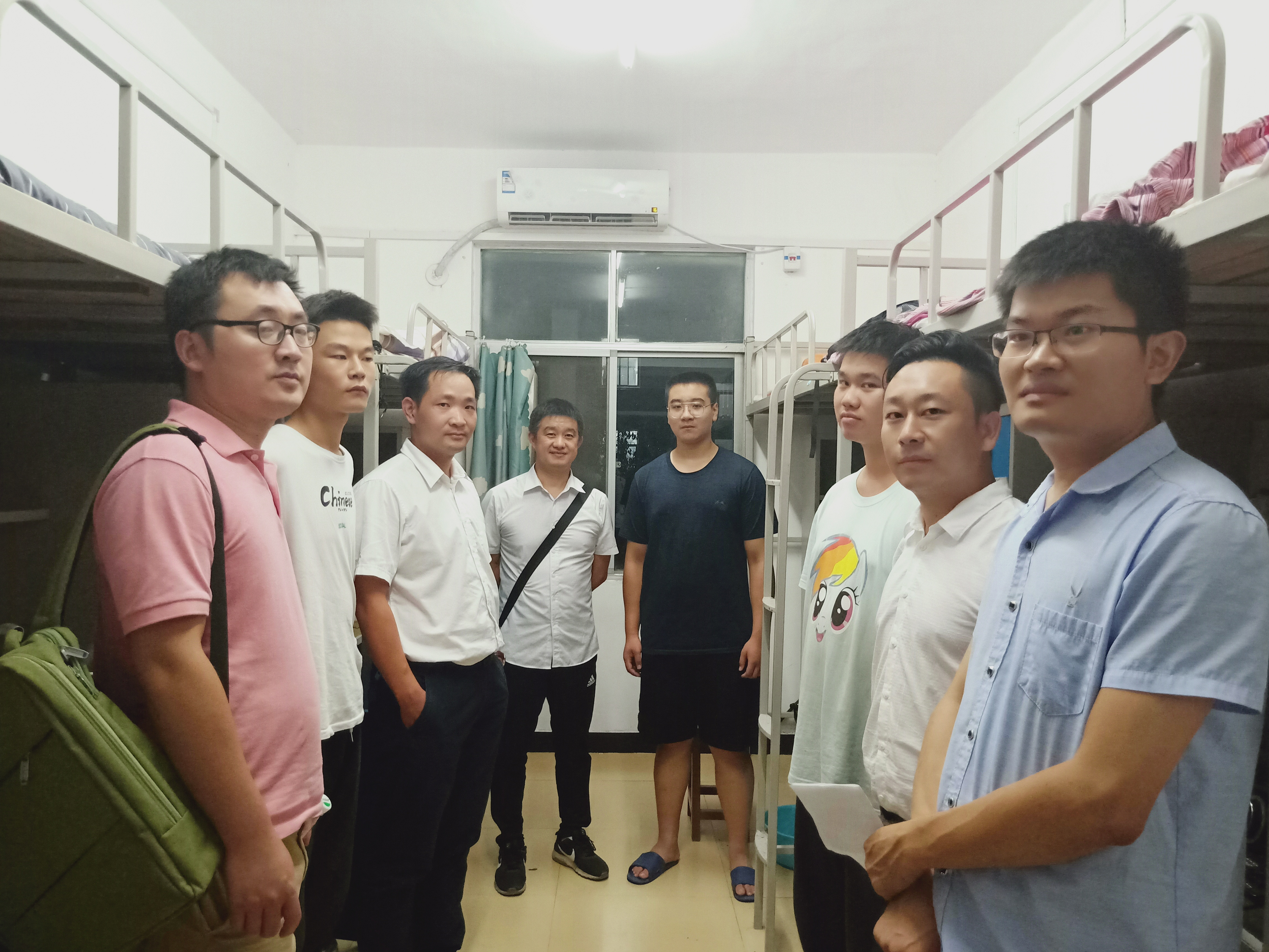 晚九时许,系领导及各班主任老师深入学生宿舍,检查新生开学宿舍情况,给予关心与问候。