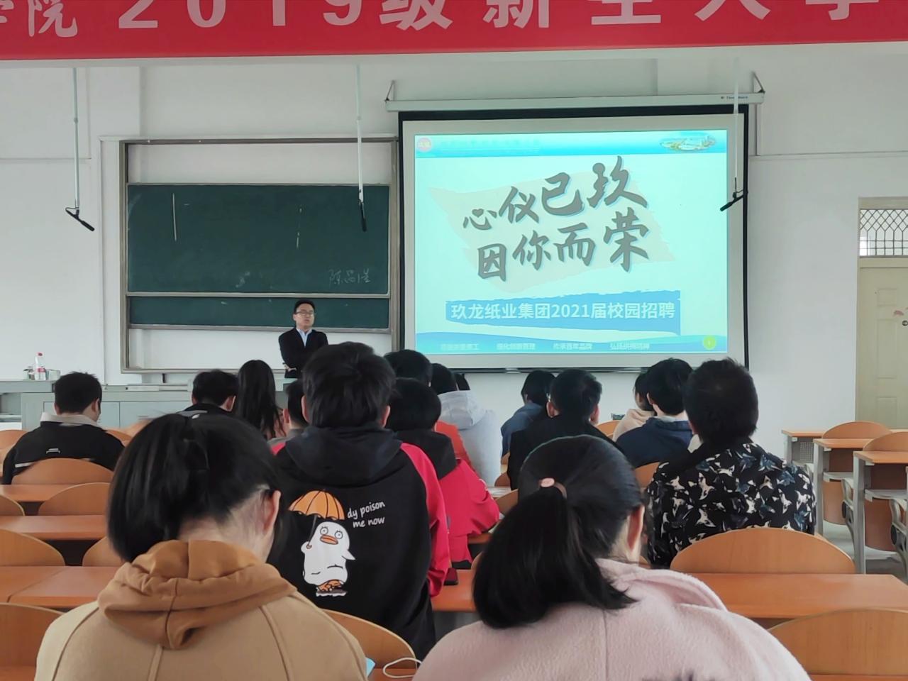 本网讯(学生记者 常伟)10月28日下午,玖龙纸业集团到我系举行专场招聘活动,我系党总支书记吴海良、辅导员陈质晶出席,2021届毕业生参加。