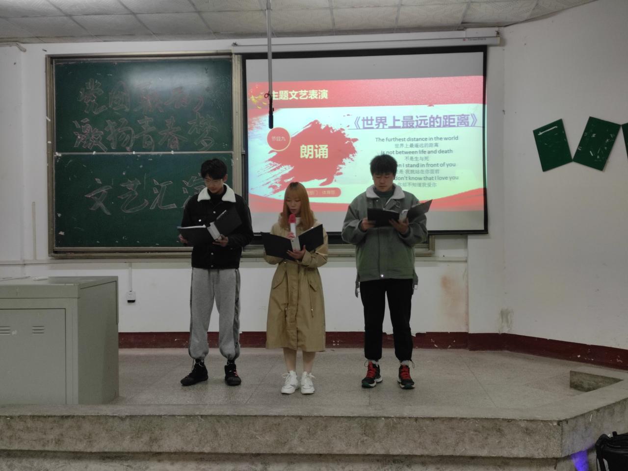 汇演开始,主持人致开幕词。秘书处成员以舞蹈《东西》为本次演出拉开序幕。随后,学生党支部集体朗诵《因为有你》向在疫情期间无私奉献的志愿者们致敬,其他部门依次上台表演合唱《我们都是追梦人》、合唱《白羊》、合唱《平凡天使》、个人演奏《二泉映月》、合唱《你的答案》、《歌曲串烧》、朗诵《世界上最远的距离》、合唱《明天,你好》、个人说唱《beats》、《舞蹈串烧》十个节目,在“击鼓传球”、“正话反说”两个游戏中与教师领导积极互动,将现场气氛一次次推向高潮。