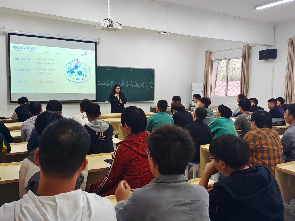 本网讯(学生记者 湛点)10月15日,在三教205教室,我系开展2022届毕业生商务礼仪培训会议。会议由武汉贝壳校园招聘部经理李文静主持,系辅导员成观雄出席,2022届毕业生参加。