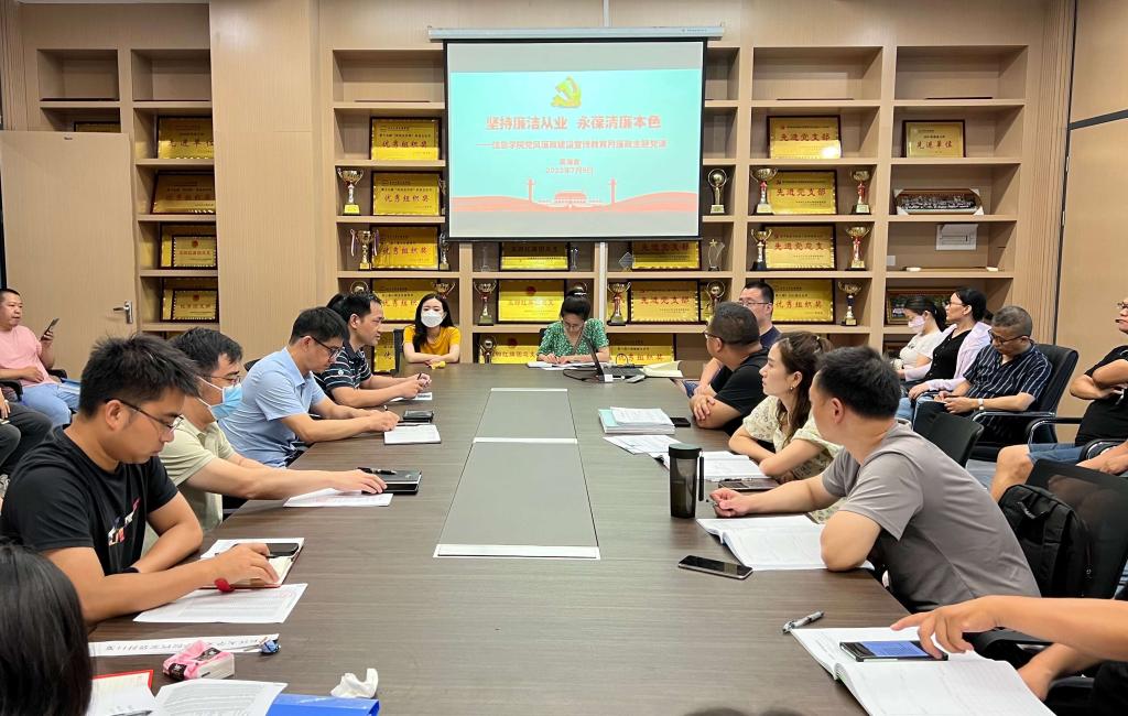 吴海良传达了学校2023年党风廉政建设宣传教育月活动部署会精神,安排了我院党风廉政建设宣传教育月工作,结合7月份支部主题党日活动围绕党风廉政建设宣传教育月活动主题开展警示教育。