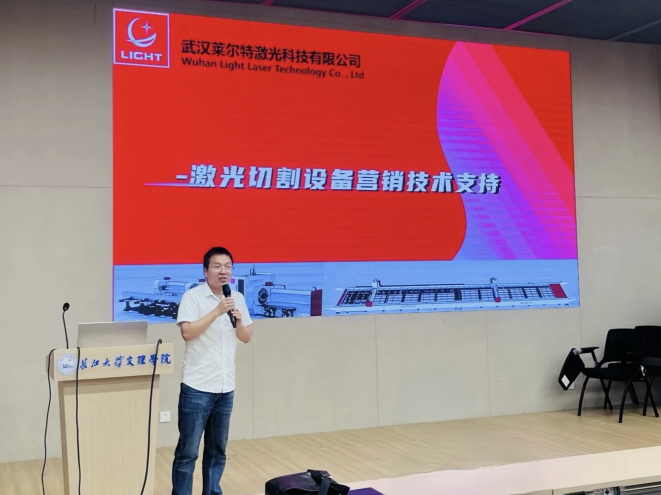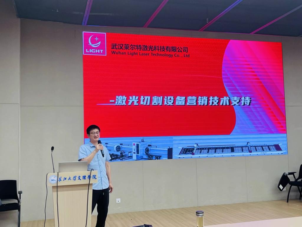 本网讯 (通讯员 贺凡格/文 徐可/摄) 我院于5月22日下午14:30在图书馆103开展“激光的专业知识普及和应用前景分享”讲座。本次讲座由我院院长付兵主持,特别邀请了莱尔特公司总监徐刚林担任主讲嘉宾,莱尔特公司数控总经理姜智军出席讲座。