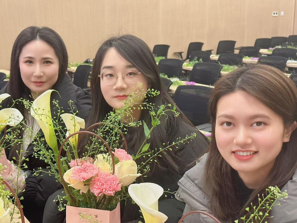 学院多名女老师跟随花艺老师的指导,完成了一件件精美的作品,用鲜花表达了内心的情感,在轻松愉悦的氛围中享受创作的乐趣,创作出了独一无二的作品,用鲜花点亮生活,感受春天气息,共度一个难忘的“三八”国际劳动妇女节。