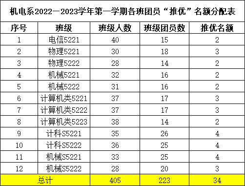 根据williamhill官网团委《关于做好2022年下半年团员“推优”工作的通知》要求,现将机电系2022级各团支部团员“推优”名额分配公示如下:
