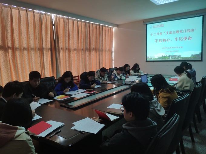 本网讯(通讯员 杨晓旭)今天(12月13日)上午,经济与法学系学生党支部围绕“不忘初心、牢记使命”主题教育要求,认真开展12月份“支部主题党日”活动。活动由经法系党总支副书记、学生党支部书记王震主持,全体在校学生党员参加活动。