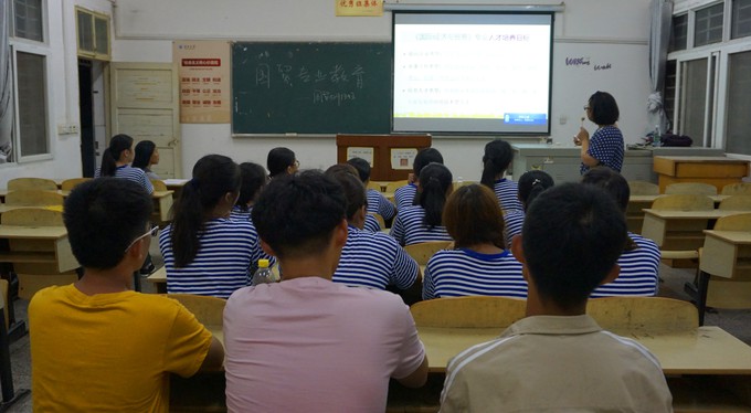三位专任教师紧靠专业知识,从专业概况、培养目标、就业方向、及办学特色等方面,对专业的介绍娓娓道来。老师们绘声绘色的讲解,调动起了现场的气氛,同学们认真听讲、积极提问,老师们耐心讲解,严谨作答。欢声笑语,其乐融融。其中,金融学专业陈世豪老师谈到自己是因为《货币战争》这本书激起了对于金融学专业的兴趣,他推荐给同学们看,同时对同学们提出了要求,希望大一新生尽早明确学习目标,学好专业知识。国贸专业孙颖老师重点谈到英语对国际经济与贸易专业的重要性,她鼓励同学们努力学好英语,为专业课学习打下坚实的基础。法学专业陈娟老师通过播放《今日说法》节目,用真实案例引导新生思考什么是法学及如何开展法学专业学习。