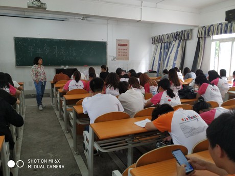 两个班级各有三位毕业生代表上台分享了自己实习期间的工作与应聘经验。其中四位同学都在广东实习,一位同学回到了家乡,还有一位同学留在荆州。陈朝阳同学从找工作的经历出发,为我们介绍了从学校到社会的心理调试过程;