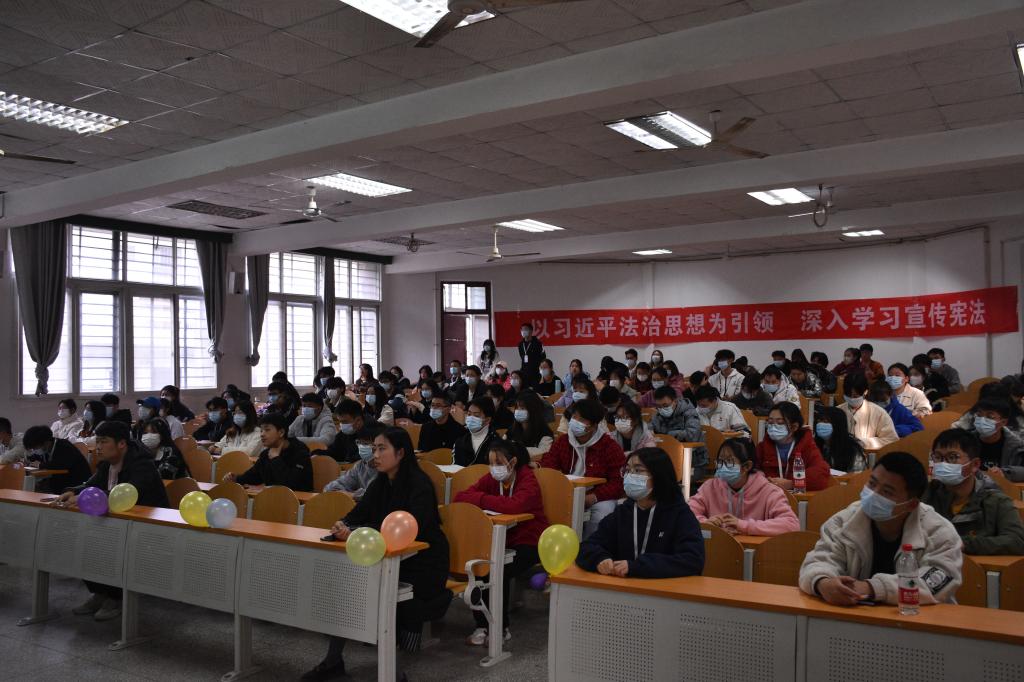 本网讯(学生记者 龚千惠 见习记者 陈燕妮 李雅雯)为弘扬宪法精神,在国家宪法日到来之际,本周五(12月3日)下午三点,经法系在4教300举行了以“学宪法,讲宪法”为主题的宪法宣传日讲座。本次讲座由法学教研室姜婷婷老师为同学们讲解宪法知识。辅导员卢佳智参加活动,经法系全体学生党员、学生会成员和各班学生代表参加活动,活动由法学教研室主任周密老师主持。