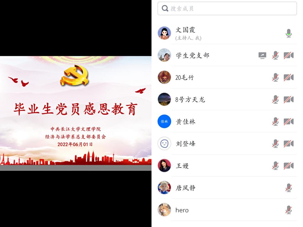 本网讯(通讯员 江晟瑀)61日中午,经法系组织开展毕业生党员离校教育报告会,系党总支书记李成军以“青年党员要成为优秀骨干力量”为题作专题报告。学生党支部毕业生党员13人参加,报告会以线上线下方式同步进行。