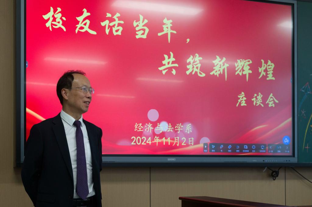 座谈会上,系主任万楚军教授对各位校友的莅临表示了热烈的欢迎。万楚军从我系近年来师资队伍建设、学科专业发展、人才培养等方面取得的显著成绩与校友进行交流。万楚军强调,校友们的支持是我系发展的重要力量,他希望校友们能够继续为学校和我系的发展献计献策,共同推动我系的事业朝着更加卓越的方向迈进。