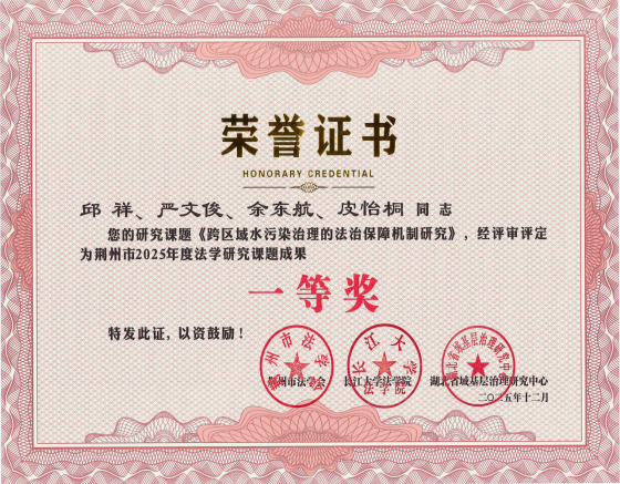 此次获奖既是对法学专业老师学术研究能力的肯定,也是我系法学学科坚持“理论联系实际,学术赋能实践”建设理念的生动印证。未来,我系将持续鼓励师生深耕区域法治建设重点领域,推动法学研究与地方实践深度融合,加速研究成果转化应用,以更多优质成果服务荆州高质量发展。