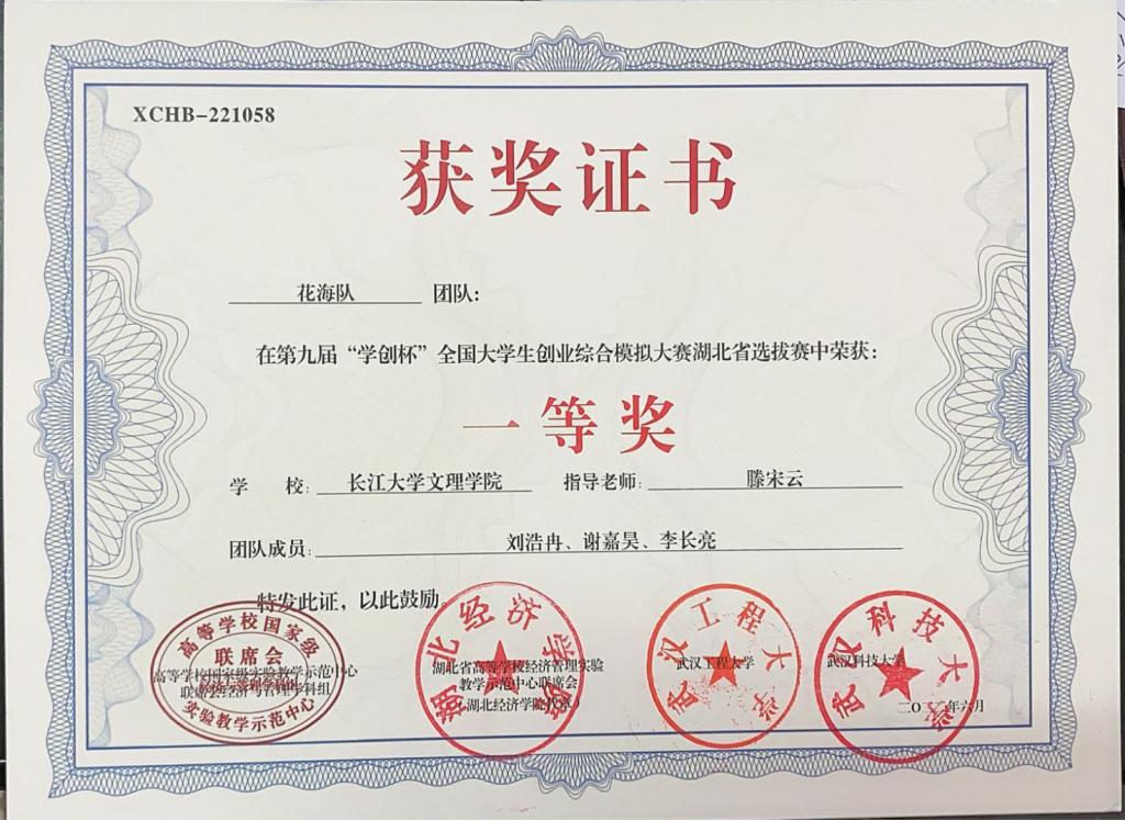 2022第九届“学创杯”全国大学生创业综合模拟大赛湖北省赛-一等奖
