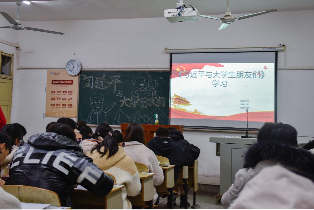 《习近平与大学生朋友们》是习近平总书记对大学生的深深嘱托,也是总书记对大学生的殷切希望。在此次主题团日活动中,各班根据实际情况,各自按不同形式组织了本次团日活动。大一年级刚升入大学,积极好动,在室外开展了主题团日活动。各班利用有趣的运动来活跃气氛;大二主要利用团课方式深入讲解习近平总书记对青年成长的殷殷期望和青年对自身发展的高标准、严要求;大三、大四各班则利用线上课堂的方式,带领大家树立起更加完美的价值观,其中金融5182班主持人在团日活动中与同学们分享了习近平与大学生的访谈实录,他们用最真实的例子拉近了习近平总书记与大学生们的距离。