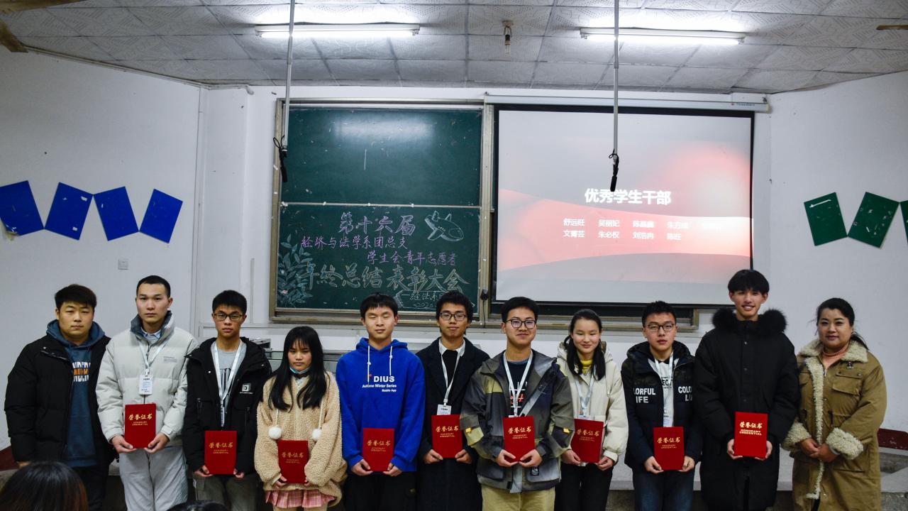本网讯(通迅员 吴丽妃)为了回顾本年度团学工作的开展情况和取得的成效,增强团队凝聚力。经法系团总支于12月23日晚,在四教200举办了“第十六届经法系团学工作年终总结表彰大会”。本次会议邀请到了经法系党总支副书记杨杉杉老师和团总支学生会指导老师卢佳智老师出席,会议由秘书长谭舒文主持。
